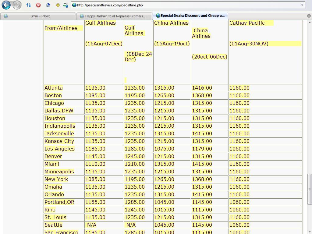 Can anybody give me a quote for the following date and place Dep: May 20, Dallas Return: June 22 Dest: KTM de_vdas1@yahoo.com