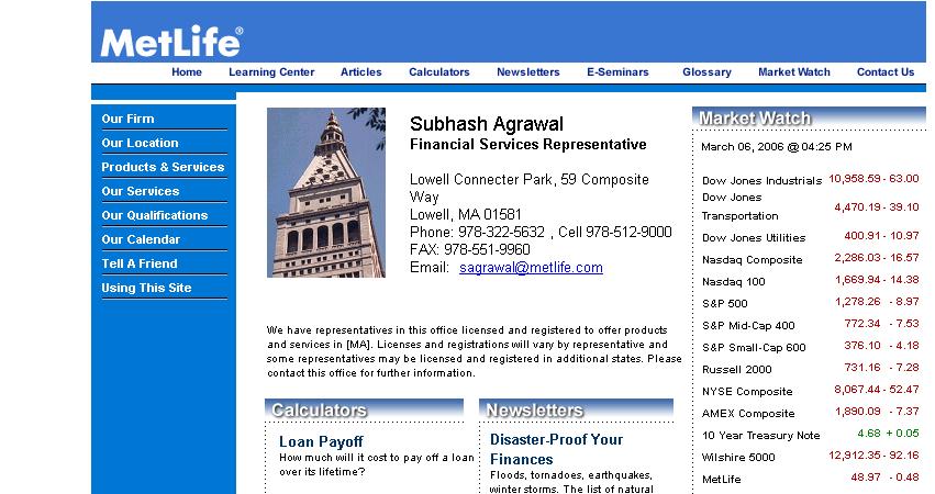 HOW DO YOU PICTURE THE FUTURE FOR YOUR FAMILY? FOR YOUR BUSSINESS? IF YOU ARE LIKE MOST PEOPLE YOU PROBABLY FEEL THAT YOU HAVE A RESPONSIBILITY TO PROCT THOSE PEOPLE WHO DEPEND ON YOU.LIFE INSURANCE CAN BE AN IMPORTANT PART OF THIS PROCESS ,PROVIDING A NUMBER OF BENEFITS TO HELP ACHIEVE THESE GOALS. CALL ME 978-512-9000 AGRAWAL OR VISIT WWW.AGRAWAL.METLIFE.COM