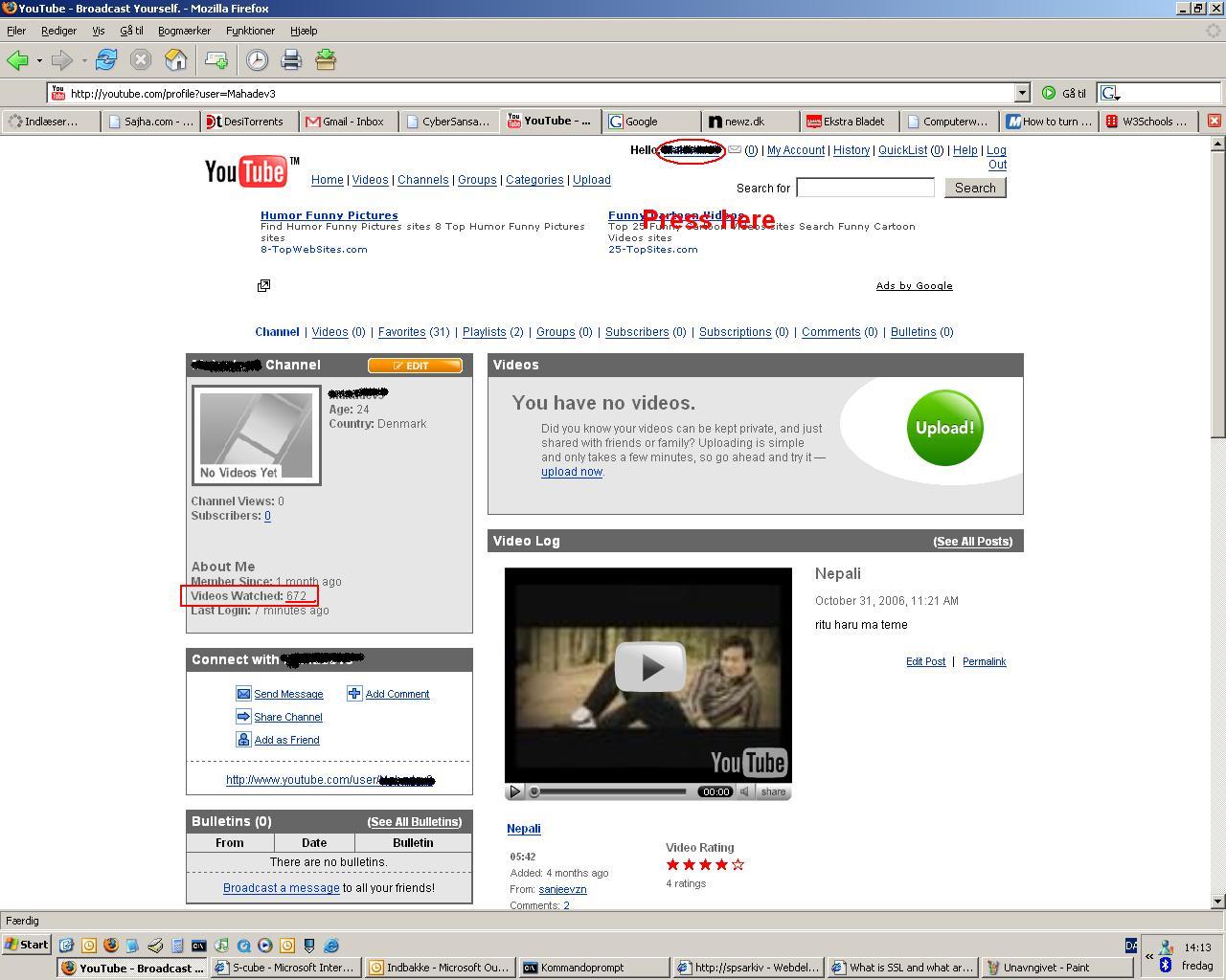 Hey rookie I realized that after I uploaded the Picture ke. I just searched for my nick name in that page and there were I found it erased it, but Stupid of me that I missed the one in the address bar. Reported my post myself to admin hoping that they would remove it, but apparently they don't wanna. Any way so you all know my username in youtube, does not make any big difference to me. But I know what you mean and why you were laughing, I was afraid that some would react and so you did. But I LOL with you as well. Cheers to you..... :)
