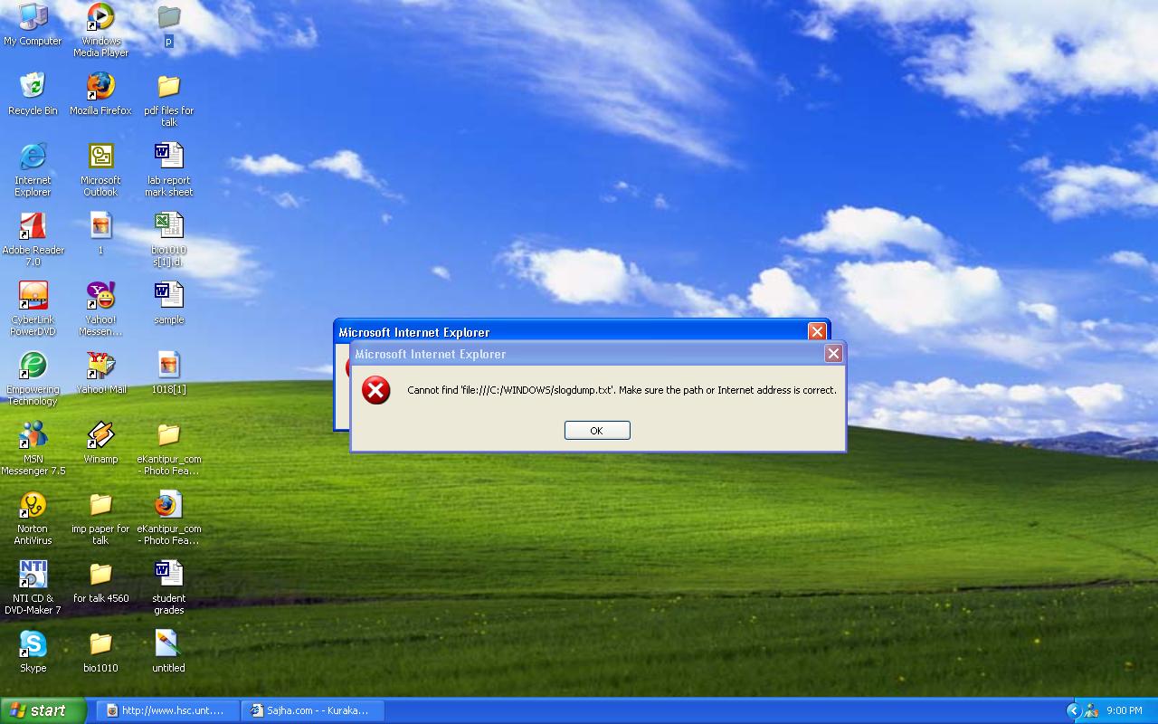 Hi guys Im trying to log on Hotmail but seems its not connecting. - I can be online MSN (But cant check emails) when, it shows how many emails I got but when I click there the page comes blank - I can also browse HOTMAIL site, type my id and passowrd - After that it comes blank page (showing DONE in bottom left) - I tried using both INTERNET EXPLORER and FIREFOX - I have tried only from my computer, I also tried using other's hotmail id and passord but it opens. - Other emails like YAHOO, GMAIL, AOL have no problem. Im really fked up guys, please help me. MSN Today (in Messanger) shows how many mails I ve got and from where, Ive got loads of urgent emails as HOTMAIL is my first choice of email. Thanks Guys -- Its already been 2 days
