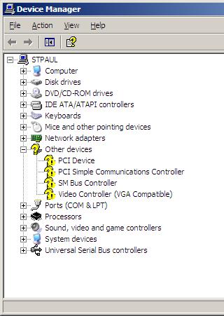 If your OS is windows XP or later and you have internet connection, double click the problematic device and in the window that appears click on Driver tab and click update driver. Otherwise you will have to dig for your drivers CDs. Good luck!