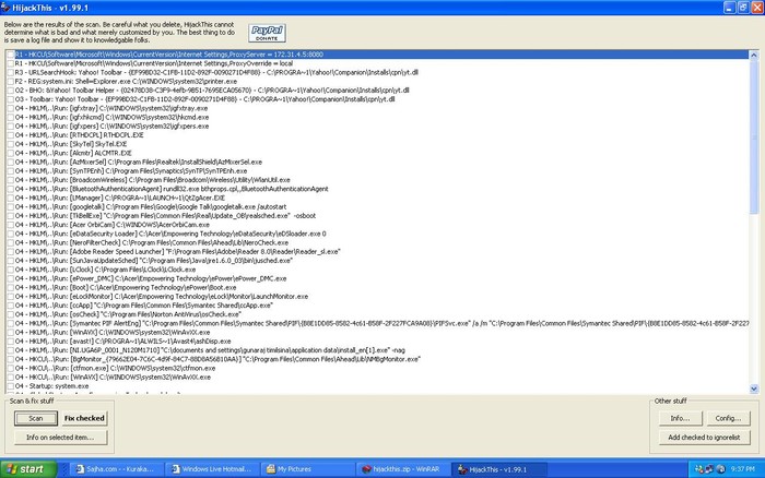1) Run HijackThis, and take appropriate action as per your expertise--don't worry.