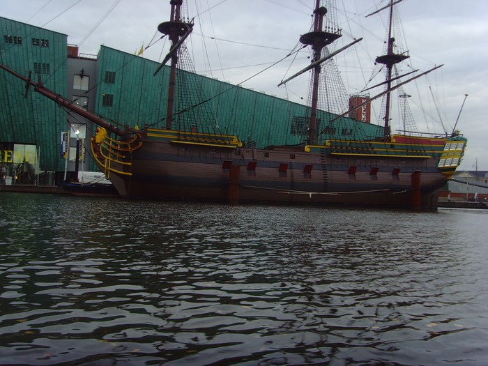 i don't know the name but its in amsterdam. behind the ship (green building) is science meusum (its called NEMO)